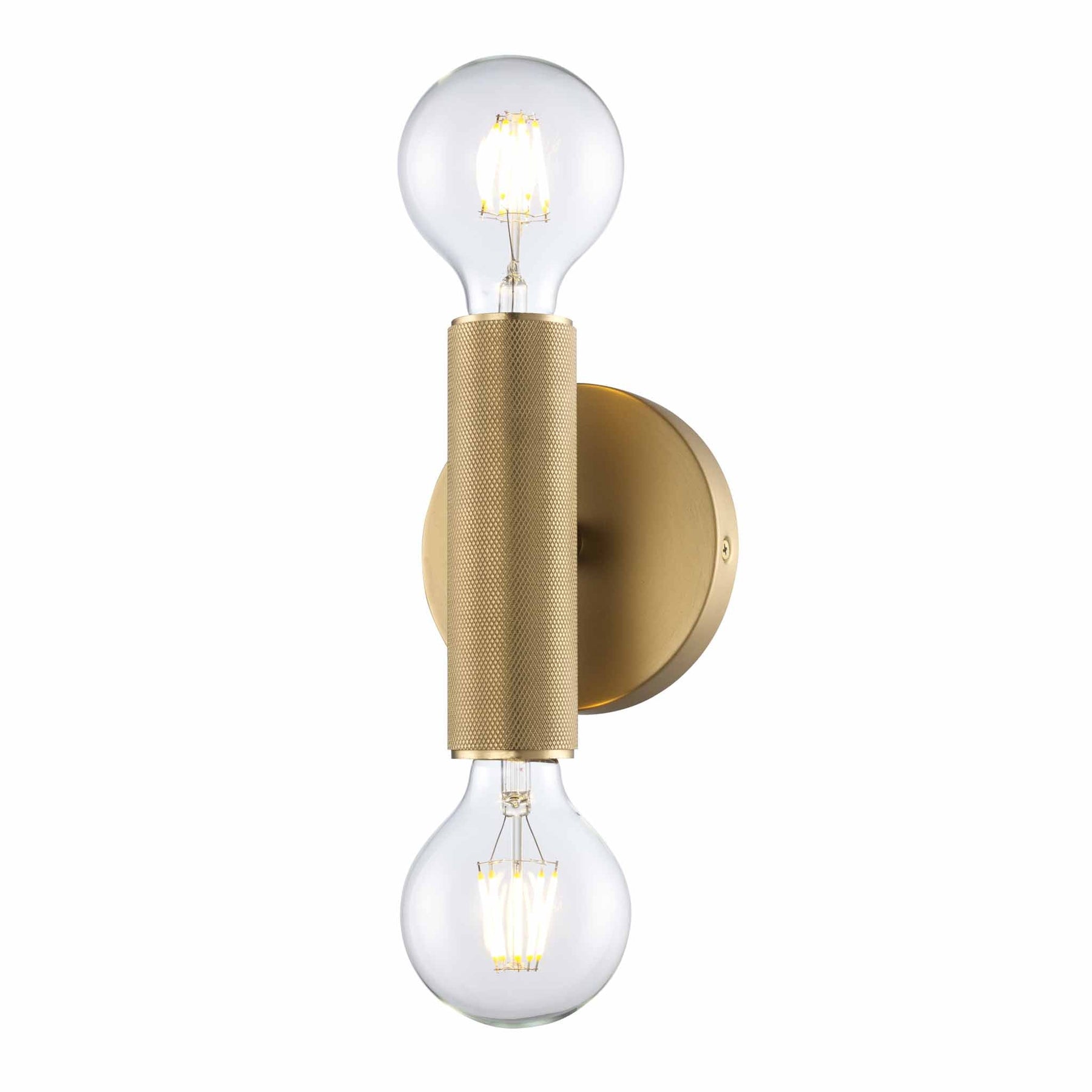 2-Light Bare Bulb Indoor Wall Sconce Industrial Knurled - Antique Gold