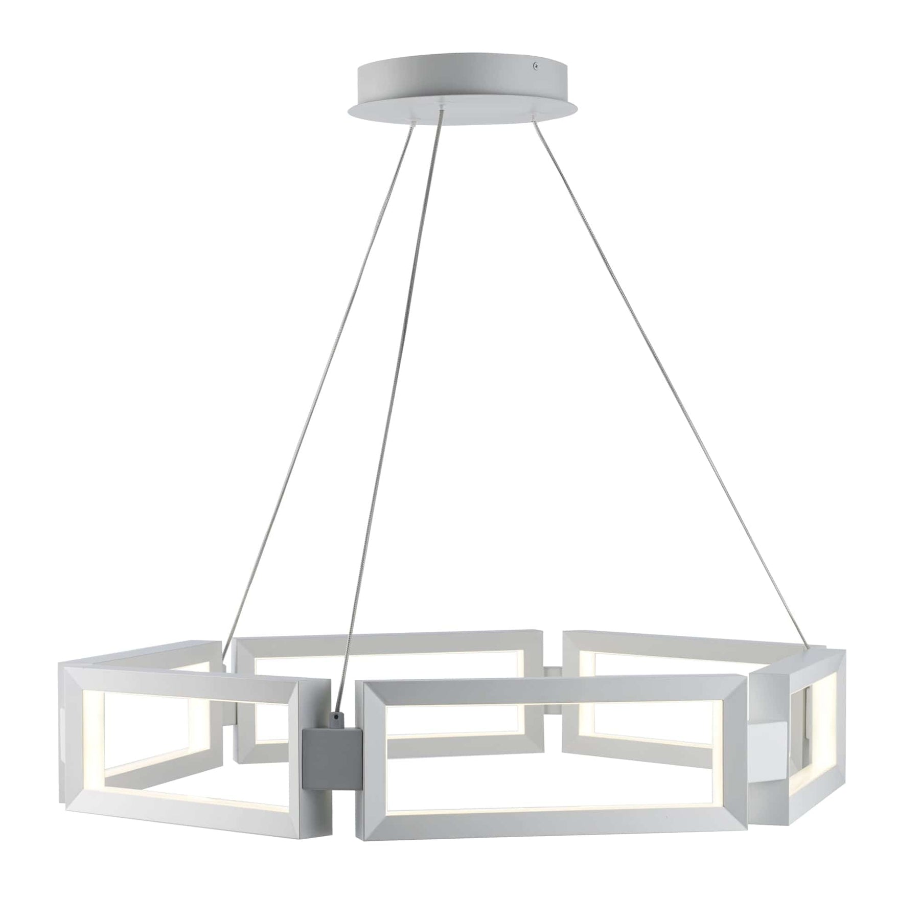 The 29.9" Nightingale LED Rectangle in white makes a bold statement with its clean, rectangular form and sleek white finish. This modern light fixture is perfect for creating a stylish, airy atmosphere in any room. The white silicone shades soften the LED light, casting a warm, even glow that brightens your space without overwhelming it.