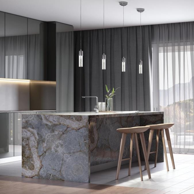 The Westinghouse Cava Mini Pendant in Chrome brings sleek, modern elegance to any room. Featuring a matte black finish with a bubble glass cylinder, it adds a touch of Hollywood Regency style while offering energy-efficient LED technology. Perfect for creating ambient lighting, this pendant offers adjustable length for easy installation and bright illumination equivalent to a 40-watt bulb while only using 8 watts of energy.